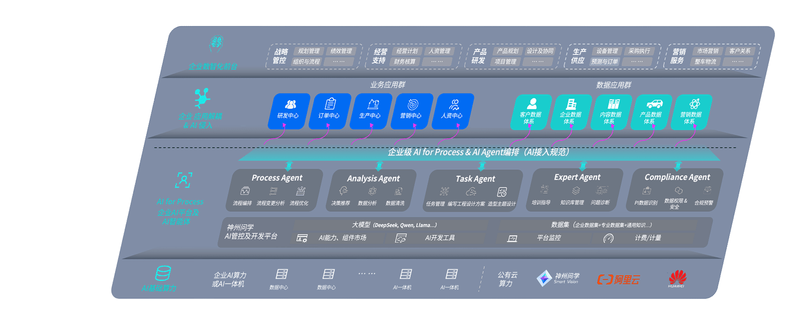 摩登4问学智车解决方案是一套基于AI技术的汽车行业智能化系统,,,覆盖从底层算力到顶层AI应用的全栈方案。。。。方案由算力层、、、模型层和应用层组成:算力层,,方案支持多种一体机配置,,,,具备云端灵活部署、、、多云适配以及动态优化计算资源的能力;模型层,,,,摩登4问学平台版提供了企业级AI应用一站式构建与管理平台,,,,支持基于后训练强化技术的汽车企业专属模型的训练、、、评测和运营;应用层,,,摩登4问学DeepSeek版提供包括超级员工、、、智能招采、、、智能营销、、、、智能客服、、、、AI for BI等一系列解决方案,,可助力汽车行业实现数字化转型,,,让管理更智能、、响应更敏捷。。。